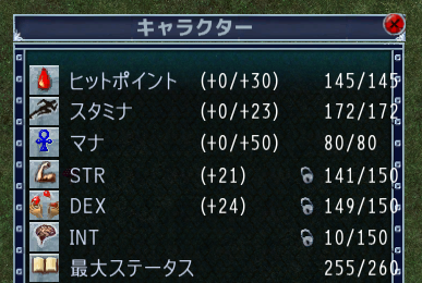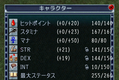 HP=STR/2+50だからSTR上限150でHP125。