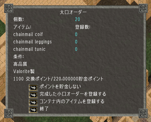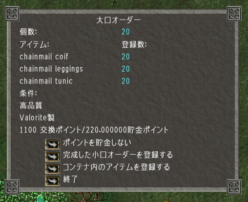 ひたすら高品質20チェインメイルを賄賂。