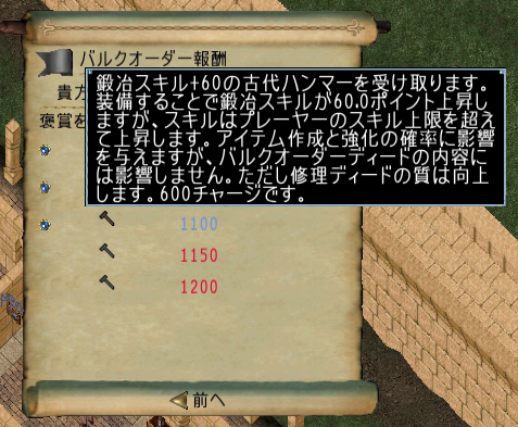 鍛冶スキル+60古代ハンマーをゲット。