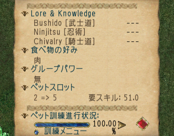 やっとの思いで、ペット訓練100%を達成。しんどい。