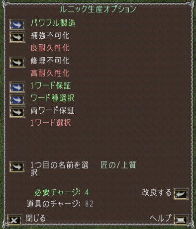 シャドウルニック「パワフル製造」「匠の/上質」で改良。