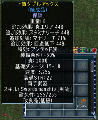 NQのD斧を買い集めて耐久性78以上だけを選別。