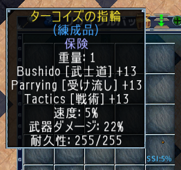 武士道、受け流し、戦術、武器ダメージを練成で指輪が完成。