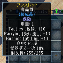 不足した戦術+10を含めた必要プロパティを練成で腕輪も完成。