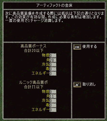 使い方は「高品質ボーナス」と「ルニック高品質ボ」を振る。