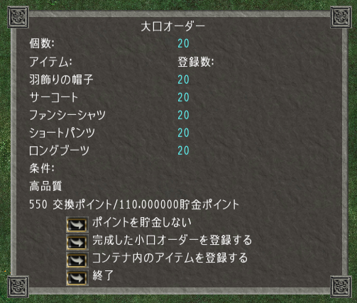 今は各スキルごとにバルクオーダーを3枚まで連続で注文を受けることができます。