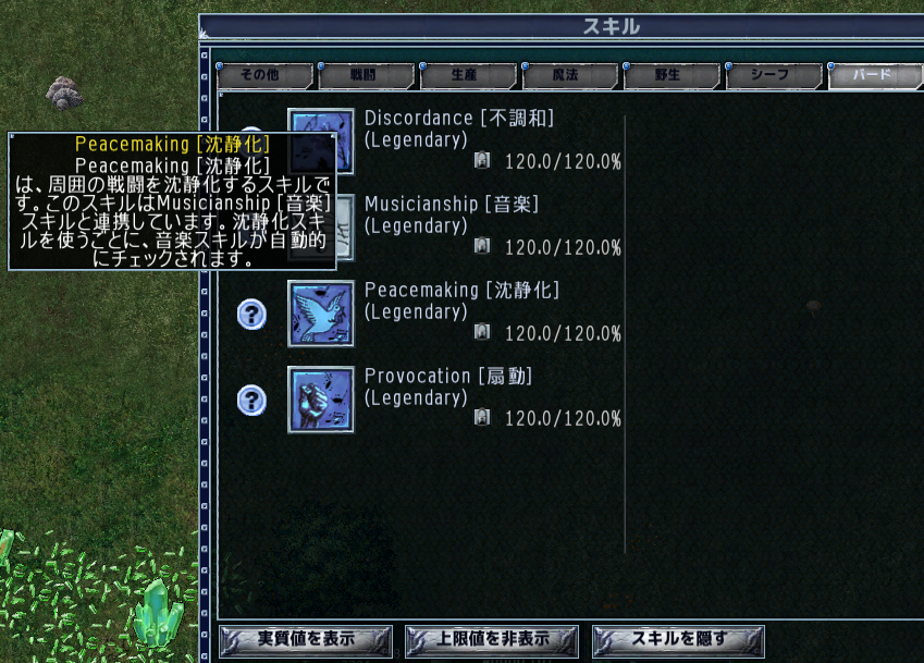 音楽スキルはNPC楽器を鳴らせばGMまで上がる。