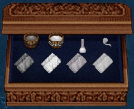 NPCから買ったばっかりの布用染め桶がデフォルト色。