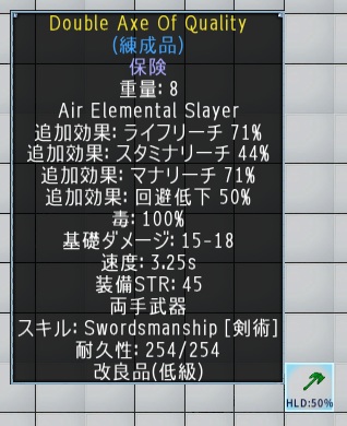 D斧じゃなくて両手斧に伐採スキルを足せば……速度35の壁か。