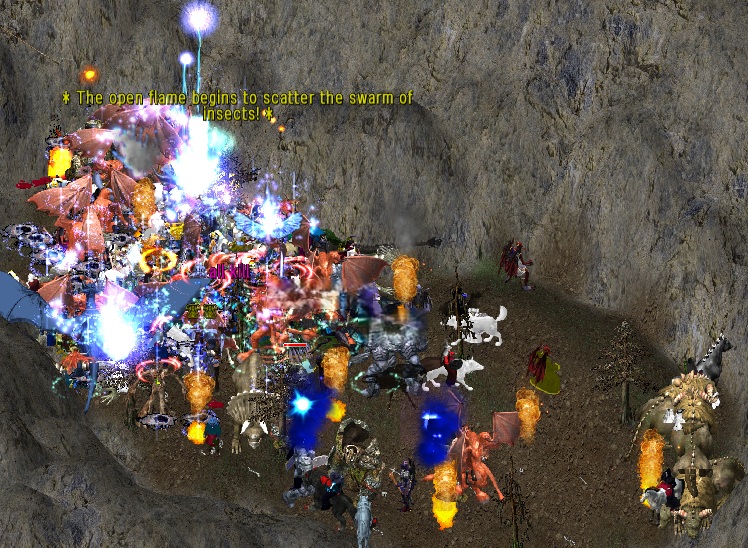 * The open flame begins to scatter the swarm of insects! *