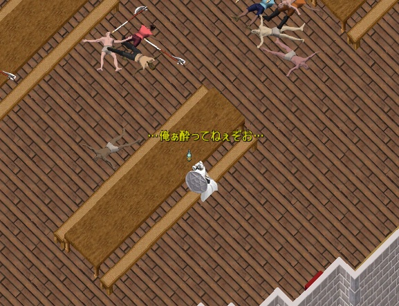 アグレッシブに酒瓶を投げて、でも倒れないよう慎重に。
