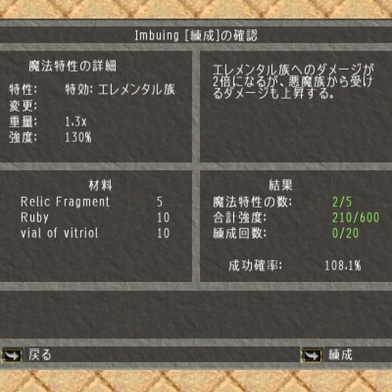 エレメンタル特効の錬成