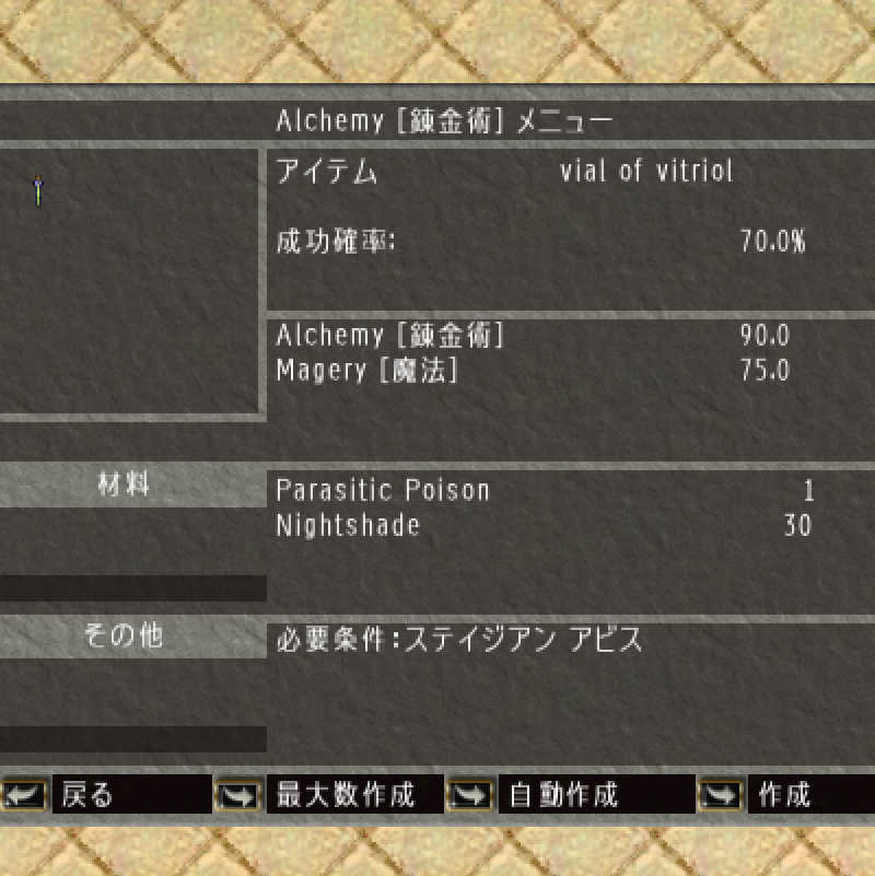 でも「vial of vitriol」は錬金術で自作できる。