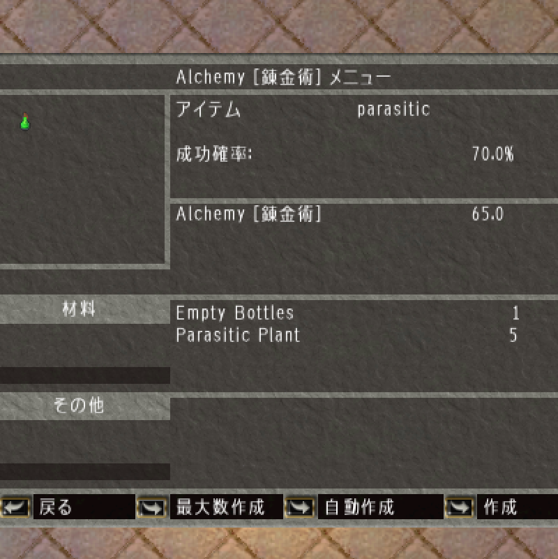 必要な「parasitic poison」(寄生毒)も錬金術で自作ok。