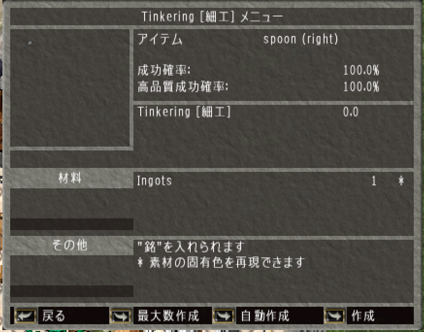 ただ、作成メニューを見るとスプーンには向き違いが。